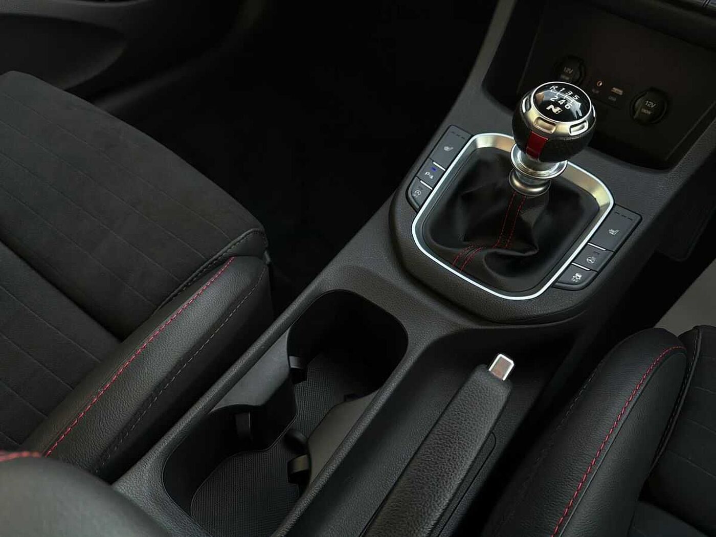 • N Branded Faux Leather and Suede Sports Seats - Black with Red Stitching