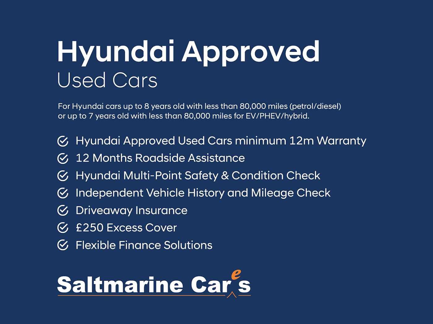 Designed to give customers peace of mind, all Hyundai Promise vehicles have a 5-year warranty and Hyundai Approved Used Cars come with a minimum of 12 months warranty – in addition to a minimum of 12 months of Roadside Assistance