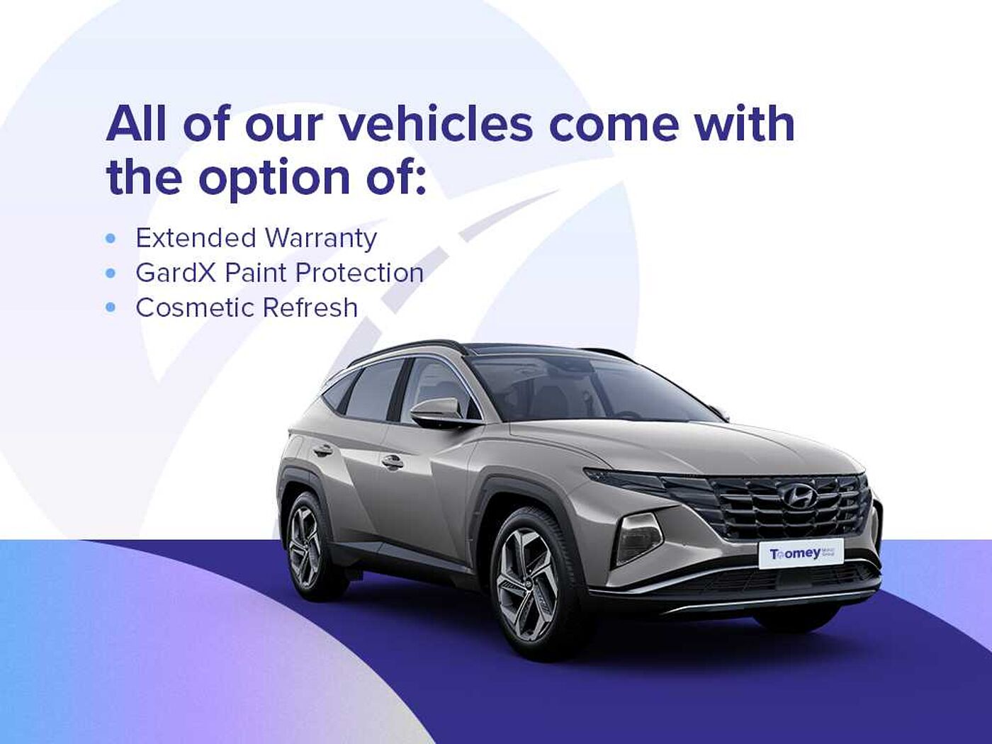 Hyundai Promise cars come with a minimum of 24 months Hyundai warranty, that can be upgraded to a 5-years Hyundai warranty (at additional cost, contact your retailer for further information). To be classified as a Hyundai Promise car, the Hyundai car must have less than 60,000 miles on the clock or be no older than 36 months old.