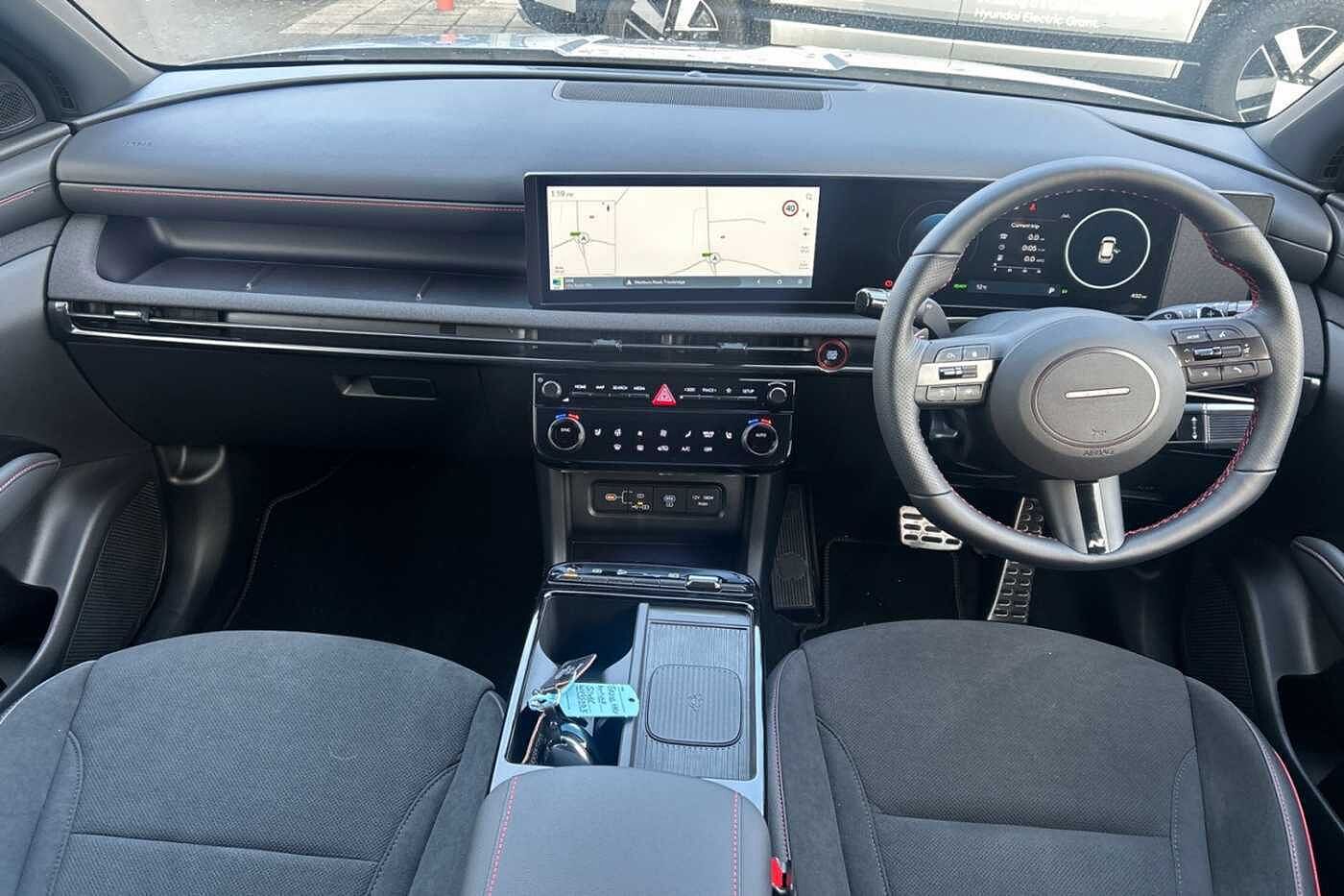 The TUCSON features cutting-edge design, a new redesigned interior and state-of-the-art smart technology. Enjoy new features, including Over-the-Air updates and Hyundai Digital Key 21 so you can lock and unlock with your smartphone. The revamped grille design of TUCSON perfectly encases the design signature Daytime Running Lights (DRL) which become illuminated when the car is switched on. The multipurpose LED rear combination lamp combines several functions including position lamp, brake light and turn signal. The new interior design, features include a 3-point steering wheel incorporating Shift by Wire (SBW) drive selector, delivering an unparalleled driving experience. With wireless charger integrated into the front armrest, and new look touch climate controls, bring an unmatched level of convenience and aesthetic appeal. The TUCSON offers advanced safety features and driver assistance systems to ensure a safer and more comfortable driving experience. The TUCSON safety features include Highway Drive Assist 1.5, a combination of Lane Follow Assist and Navigation-Based Smart Cruise Control. With these features, you can have more peace of mind while driving your new car. The new Crosswind Stabilisation Control system actively prevents lane departures caused by strong crosswinds to maintain your driving direction and ensure stability. For a more unique look, the sporting aesthetics of the TUCSON N-Line comes equipped with body-coloured wheel arches, black detailing on the front grille and unique 19” N Line alloy wheels. The sporting exterior is complemented by the new design interior that adorns red detailing on the faux suede and black leather upholstery. Style, comfort and convenience at your fingertips.