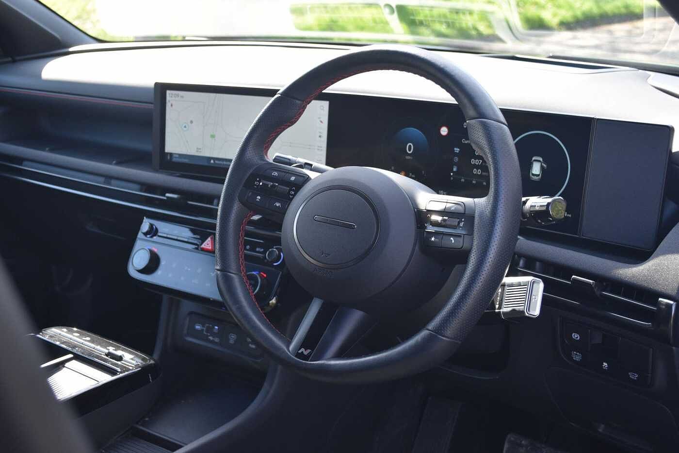 This 2025 Hyundai TUCSON T-GDi N Line S is a superb example, having had only one owner from new. This stylish SUV boasts a 1.6 litre petrol hybrid engine, meeting Euro 6 emission standards. Inside, you'll find a wealth of features designed for comfort and convenience, including three zone climate control, a heated steering wheel, and seamless Apple CarPlay integration for your phone. Parking is made effortless with front, rear, and side parking distance warnings, complemented by a sophisticated 12 inch projection head up display. The TUCSON T-GDi N Line S offers impressive performance, accelerating from 0 to 62mph in just 8.2 seconds, demonstrating its capability compared to other vehicles in its class. Its generous boot space ensures you have ample room for all your luggage and shopping needs. Furthermore, this model benefits from a low insurance group, making it a more economical choice for many drivers.